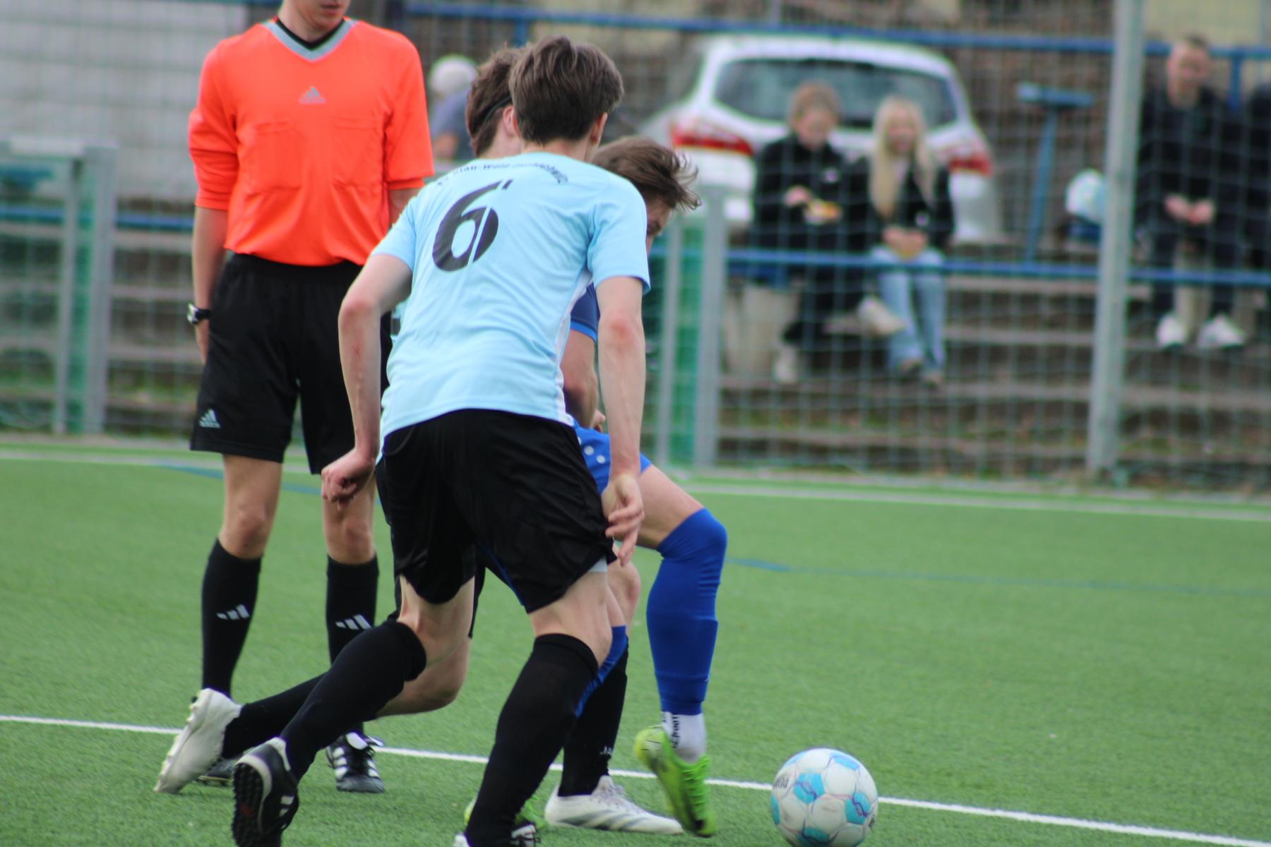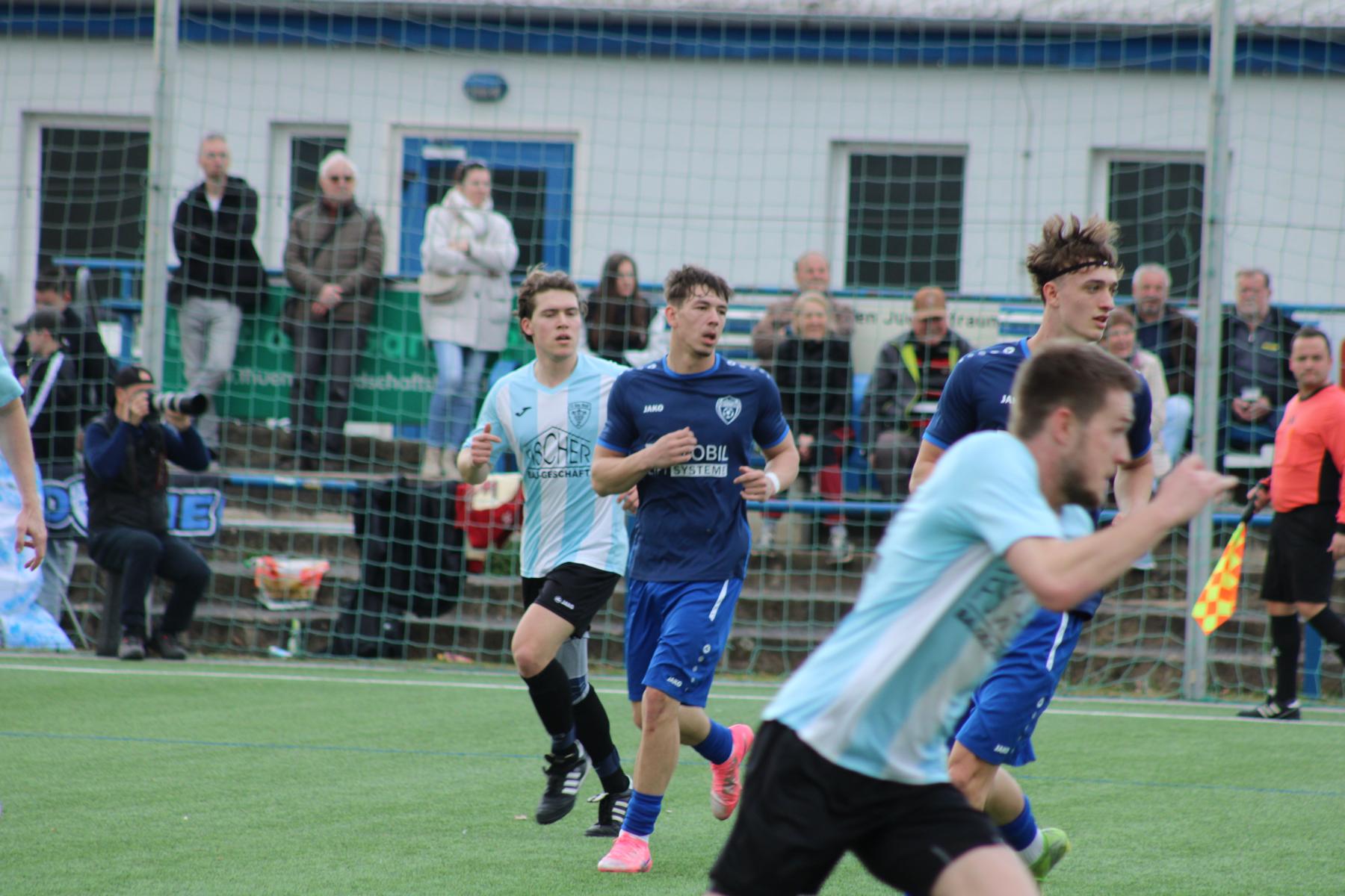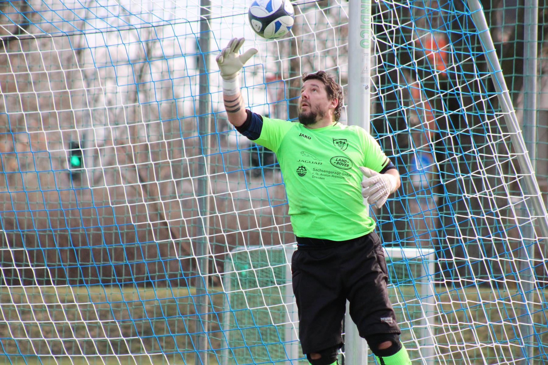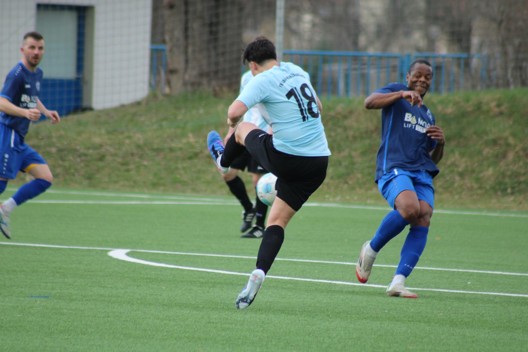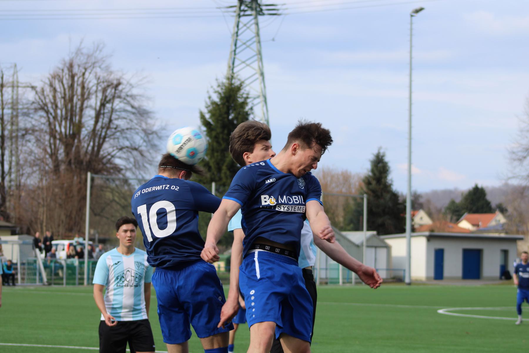 Vorübergehende Spielverlagerung in die Spielhälfte der Oberlausitzer. Einen Flankenball köpfte Schneider auf das Tor von Hladik, der den Ball parieren konnte. Auch Goldberg und Eberlein mit Schussversuchen. Bei einem Angriff der Gäste ließ man Kahle aus 25 Metern schießen. Dessen Schuss ging nur wenige Zentimeter über das Zschachwitzer Tor. Abwechselnde Angriffsaktionen – eben noch die Oberlausitzer am Dresdner Strafraum, als unser Kapitän im gegnerischen Strafraum den Ball erhielt und kurz entschlossen scharf und flach in der 30. Spielminute zum 1:1-Ausgleich erzielte. Weitere Möglichkeiten durch Goldberg und Schneider wurden von der Abwehr blockiert und ein Vollspann-Torschuss von Birkner landete in den Armen des Gästetorwarts. Bei einem weiteren Gegenangriff des Tabellenvierten lässt man Janu aus ca. 14 Metern schießen; mit guter Faustabwehr verhinderte Löwe den Gegentreffer. Wieder kommt der Ball aus dem Mittelfeld in den Oderwitzer Strafraum, als dem aufgerückten Domke in der 36. Minute mit sehr schönem Schuss die 2:1-Führung gelingt. In dieser Phase wurden von Schiedsrichter Noah Werner von der TSV Flöha 1848 einige fragwürdige Entscheidungen getroffen. So auch, als Birkner auf der linken Seite vor der Strafraumgrenze gefoult wurde, ohne Freistoßpfiff. Noch vor dem Pausenpfiff konnte Donath gegen Heinrich und Nguyen gegen Salich zur Ecke klären. Diese Führung der Blau-Weißen zur Pause war nicht unverdient.